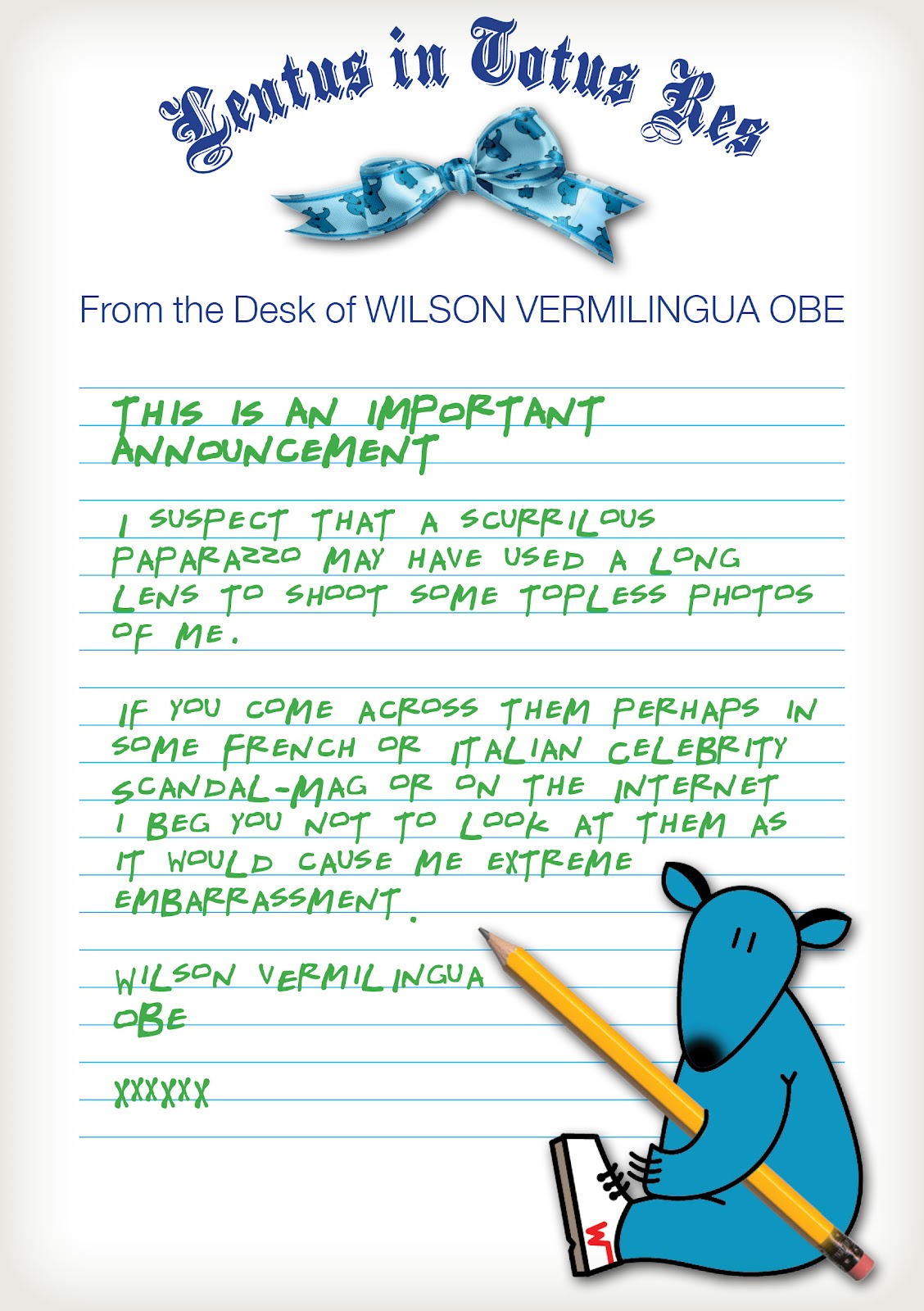 If you come across them, perhaps in some French or Italian Celebrity Scandal-Mag, or on the Internet, he begs you not to look at them as it would cause him extreme embarrassment.