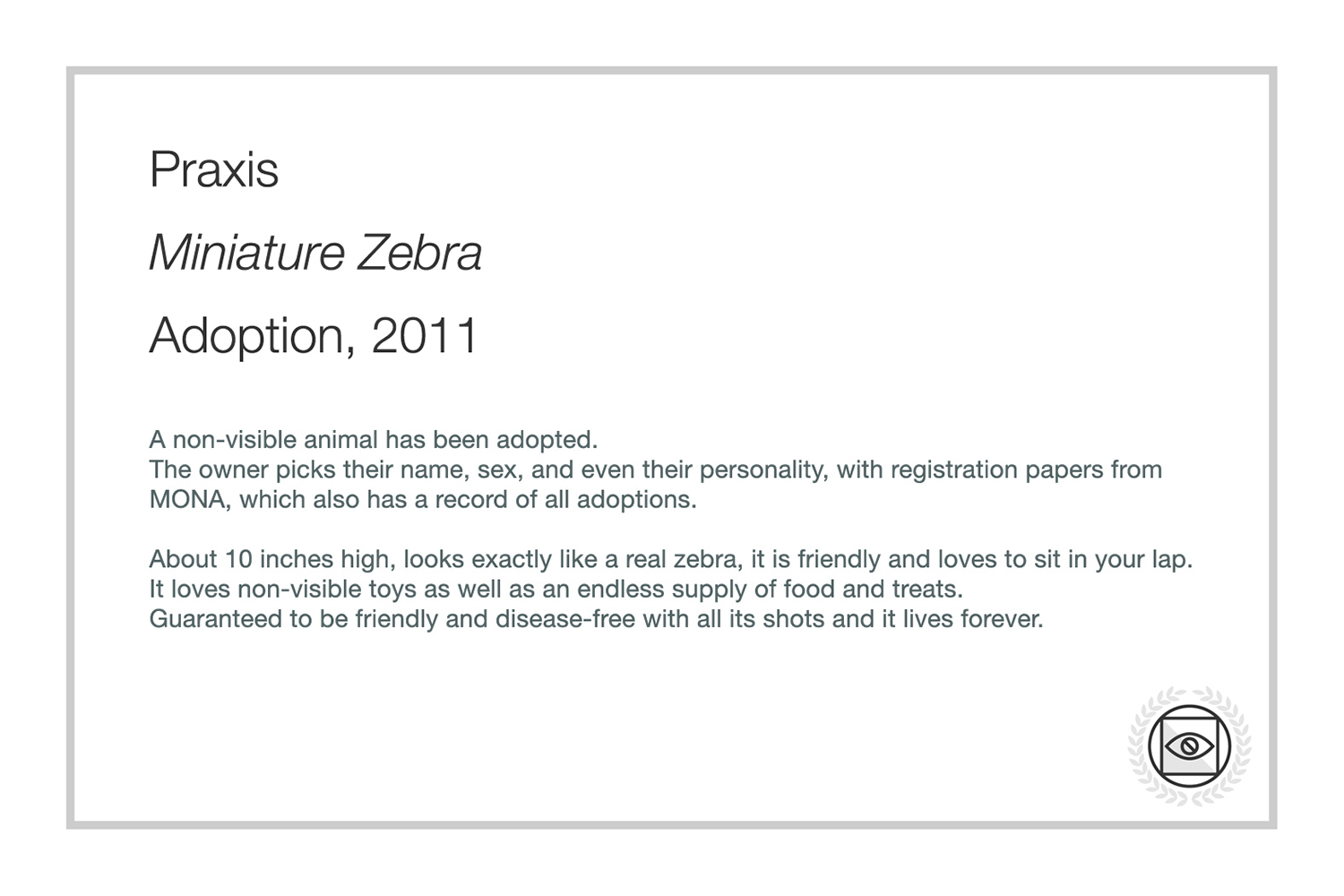 A non-visible animal has been adopted. The owner picks their name, sex, and even their personality, with registration papers from MONA, which also has a record of all adoptions.